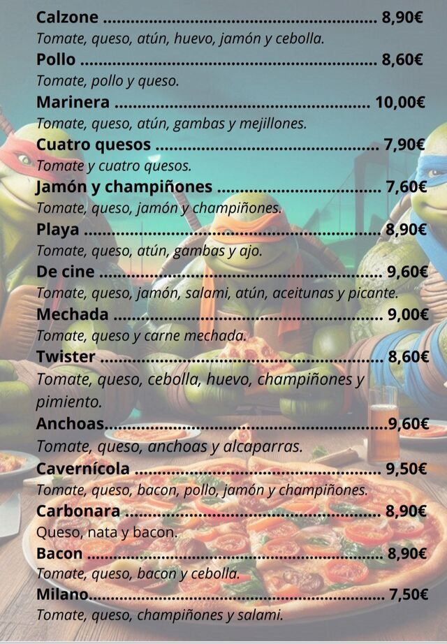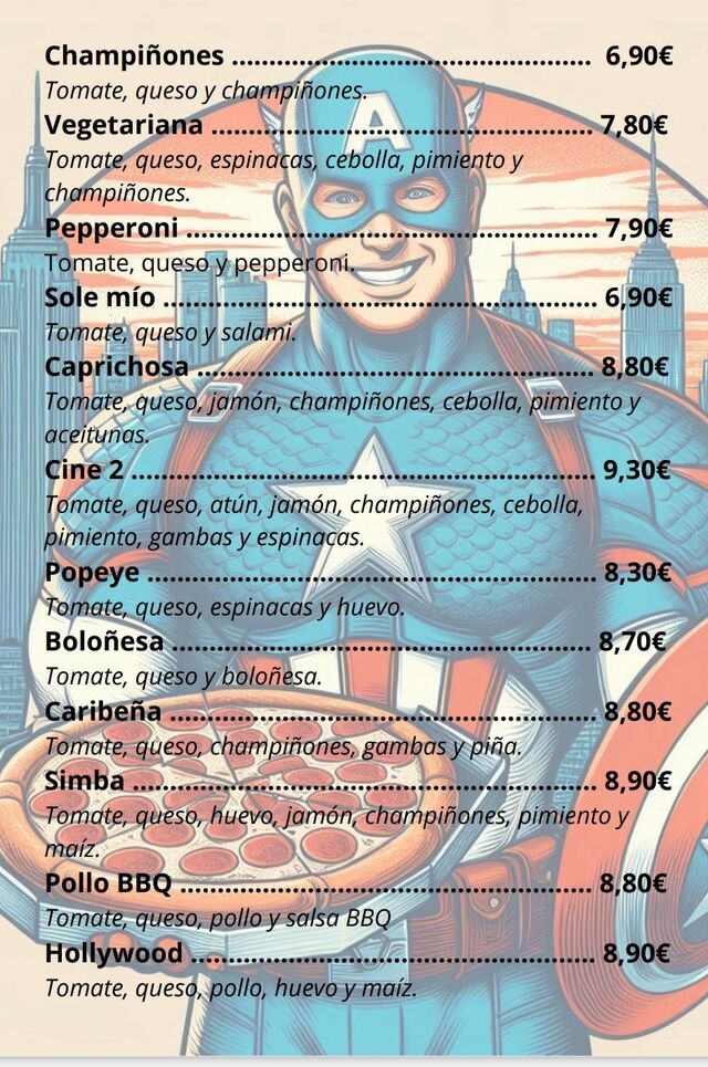 LLAMAR +34 922575393Descubre una experiencia gastronómica única en Pizzería de Cine, donde el sabor y la creatividad se fusionan. Nuestro menú ofrece pizzas gourmet inspiradas en el mundo del cine, con combinaciones de ingredientes que rinden homenaje a tus películas favoritas. Desde entrantes deliciosos hasta postres irresistibles, cada plato está diseñado para deleitar tu paladar. ¡Explora nuestro menú y vive una película de sabor!